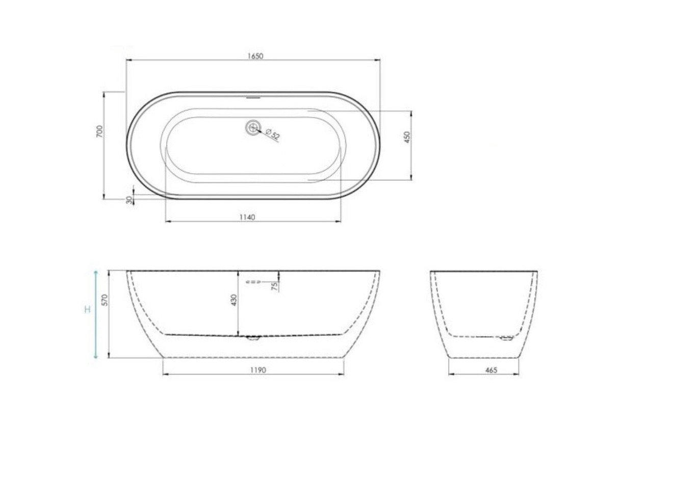 Freestanding Acrylic Bath 1650 × 700mm – Luxury White Finish