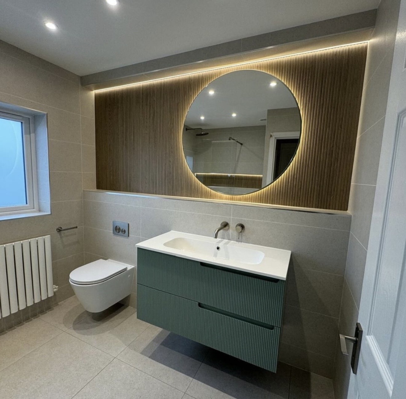 The neutral colour palette enhances light and space, pairing perfectly with warm brassware, natural wood finishes, and minimalist fixtures.